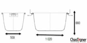 • Ce bac est utilisé sur les chantiers, pour la réception, le stockage et la manutention de béton, mortier, terre, gravât et autres matériaux.