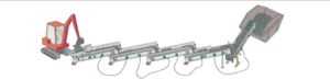 • Chaque bande de transport est montée sur un support ou une construction tubulaire