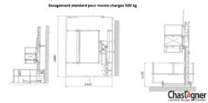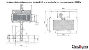 Encagement sur mesure pour monte-charges. Un encagement bas sécurisé interdit l’accès sous la cabine du monte-charges lorsque celui-ci est en hauteur. Equipé d’une porte deux battants simple, il permet aussi de fermer et de sécuriser l’encagement installé en partie basse interdisant l’accès sous la cabine du monte-charges lorsque celle-ci est en hauteur ou en mouvement. CHASTAGNER étudie pour vous les caractéristiques de votre emplacement et met en place un encagement sur-mesure.