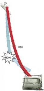 • Eviter de faire des coudes trop prononcés. Pour obtenir une bonne courbure, guider les goulottes à l’aide d’une corde passant à l’intérieur, solidement fixée au point haut et à la réception sur la benne