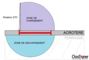 Grue de terrasse manuelle 400 kg. Ce matériel permet l’approvisionnement et l’évacuation des matériaux depuis une terrasse. Composé d’un treuil manuel, d’une potence et d’une pince d’acrotère, il permet une installation facile et ne nécessite aucun lestage.