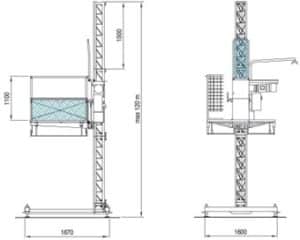 Monte-charges 500 kg monophasé. Grâce à sa cabine fermée, ce monte-matériaux permet un transport de charges en toute sécurité sur de grandes hauteurs. Les portes d’étage permettent, de par leur conception, de sécuriser chaque niveau desservi interdisant l’ouverture sans la présence de la cabine. Il est très utilisé généralement sur échafaudage pour avoir un système de déchargement et de manutention verticale sûr et rapide. Implantation possible sur la façade d’un bâtiment. Grande souplesse dans la durée et l’emplacement. Alimentation monophasée.