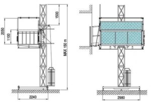 Monte-charges avec accompagnant 2000 kg. Cette plate-forme de transport est destinée pour le levage des personnes et des matériaux sur chantier. Grâce à sa cabine fermée, elle permet un transport en toute sécurité sur de grandes hauteurs. Les portes d’étage permettent, de par leur conception, de sécuriser chaque niveau desservi interdisant l’ouverture sans la présence de la cabine. Il permet une grande souplesse dans la durée et l’emplacement et diminue la pénibilité. Cette solution de manutention verticale est souvent installée sur échafaudage. Implantation possible sur la façade d’un bâtiment.