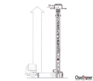 Monte-meubles sur véhicule Shorty 29 m avec opérateur. Très utilisé lors des opérations de levage ou d’évacuation de tous types de matériaux depuis l’extérieur d’un bâtiment, ce monte-meubles autoporté est le plus compact des monte-meubles. Il permet un démarrage et un freinage progressif du chariot augmentant ainsi la sécurité. Deux treuils ainsi que des galets de guidage assurent la sécurité lors du déploiement des échelles.