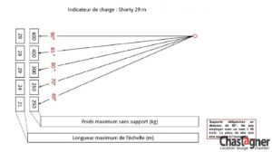 • La charge utile dépend de l’inclinaison des échelles, l’abaque de charge (situé sur l’échelle de base) doit être vérifié avant l’utilisation du monte-meubles.
