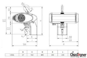 Palan électrique à chaîne 1000 kg disposant d’une grande hauteur de levage pour une installation fixe. Ce matériel peut s’installer sur de multiples supports (échafaudage, potence, portique…) en intérieur ou en extérieur de bâtiment. Ce palan à chaîne a été spécialement étudié pour le levage de charges lourdes en toute sécurité. Fourniture et pose de fer sur demande ainsi que l’installation de radiocommande.