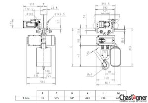 Location palan électrique à chaîne de 2500 kg V avec chariot électrique
