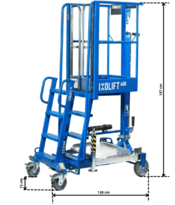 L’Ixolift 400 plateforme roulante, ajustable et légère, pour les travaux de maintenance en extérieur ou intérieur, est une alternative plus sûre et plus confortable aux échafaudages ou échelles. Equipée d’une plateforme avec garde-corps et portillon double battant. Grâce à sa poignée de levage, la hauteur de la plateforme s’ajuste au plus près des besoins assurant un confort de travail optimal. Entièrement automatique, sa simplicité d’utilisation et sa légèreté en font un matériel aisément manœuvrable, compact avec une grande polyvalence d’utilisation.