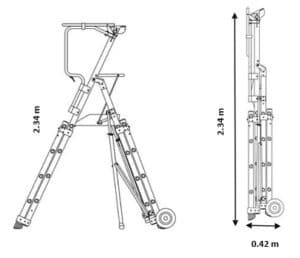 • Dimensions repliées pour le transport : Long= 2.34 m, Larg = 0.75 m, Ep = 0.42 m