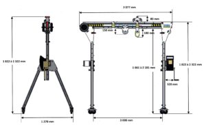 • Composé d’un portique aluminium équipé d’un treuil manuel de 20m fixé sur un pied et d’un chariot avec poulie
