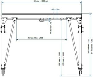 Location portique roulant 2000 kg/4 m - XL - Hauteur sous fer 4 m