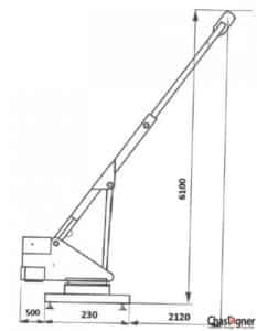 - Grâce à sa hauteur sous crochet de 5,10 m et sa portée de 3,20 m depuis l’axe de rotation, elle offre une amplitude verticale et horizontale idéale, facilitant la manutention des charges volumineuses ou longues.