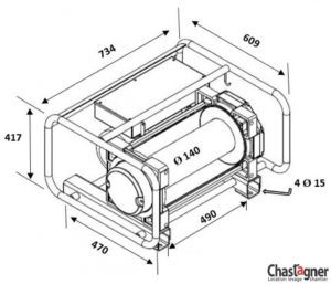 • Le châssis est percé en 4 points de diamètre 15 mm permettant l’ancrage au sol. Il est interdit de percer ou de souder le châssis du treuil