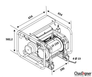 • Le châssis est percé en 4 points de diamètre 15 mm permettant l’ancrage au sol. Il est interdit de percer ou de souder le châssis du treuil