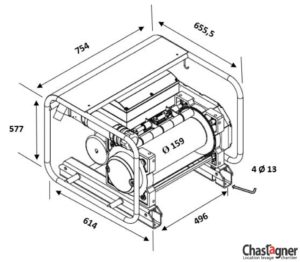 • Le châssis est percé en 4 points de diamètre 15 mm permettant l’ancrage au sol. Il est interdit de percer ou de souder le châssis du treuil
