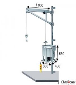 Treuil électrique de pied d’échafaudage de 200 kg. Ce matériel permet de monter ou descendre les matériaux de construction ou les éléments mêmes de l’échafaudage lors du montage sur chantier. Léger, il est facile à installer en pied d’échafaudage : seule la potence pivotante est ensuite placée à la hauteur souhaitée. Il bénéficie de deux vitesses (une lente et une rapide). En configuration standard, ce treuil a une hauteur de travail initiale de 40 m qui peut être augmentée lorsqu’il est placé en hauteur. Différents accessoires sont disponibles pour lever tous types de charges.