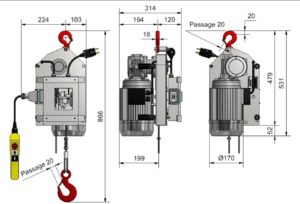 Treuil électrique à câble passant 500 kg. Disposible en version standard, avec un kit mouflage ou avec une radiocommande. Son utilisation est fréquente sur de grandes hauteurs et permet de lever, tirer et positionner des charges sur une grande longueur tout en gardant la même capacité de levage. Ce treuil de chantier est beaucoup utilisé pour l’aménagement des gaines d’ascenseurs, et notamment pour le levage des rails de guidage et des contrepoids des cabines d’ascenseurs.