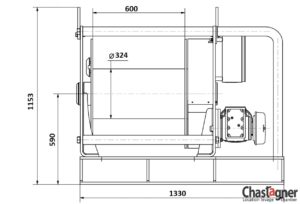 • Efforts à l’arrachement pour TE2000 : 2 498,5 kg. Le calcul est basé avec une pleine capacité de câble sur le tambour. Le départ du câble est à l’horizontal par le dessus du tambour