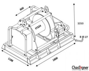 • Le châssis est percé en 8 points de diamètre 27 mm permettant l’ancrage au sol. Il est interdit de percer ou de souder le châssis du treuil
