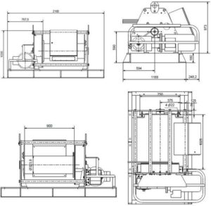 • Efforts à l’arrachement pour le TT6000VV/ODP : 7 500 kg. Le calcul est basé avec une pleine capacité de câble sur le tambour. Le départ du câble est à l’horizontal par le dessus du tambour